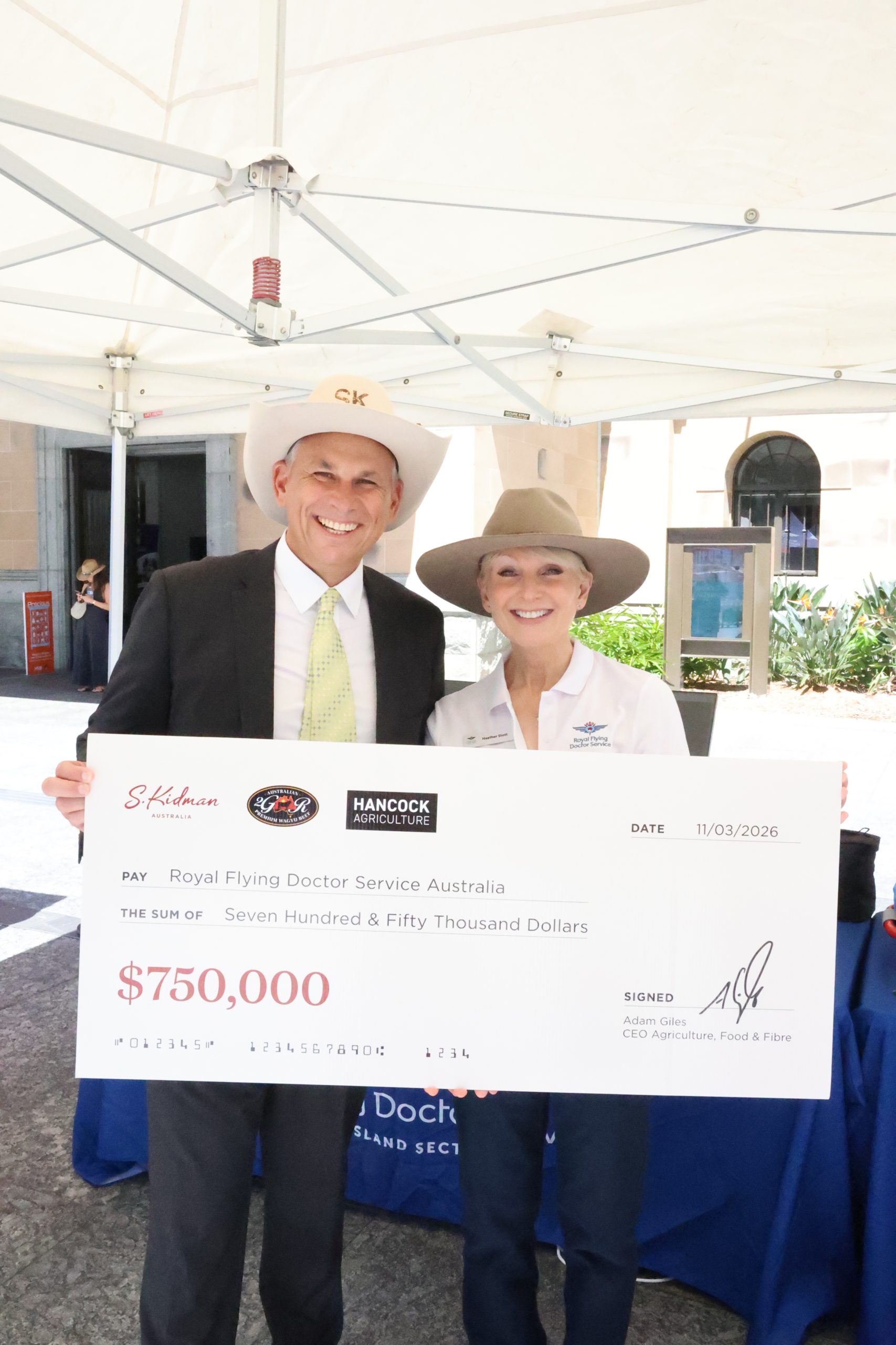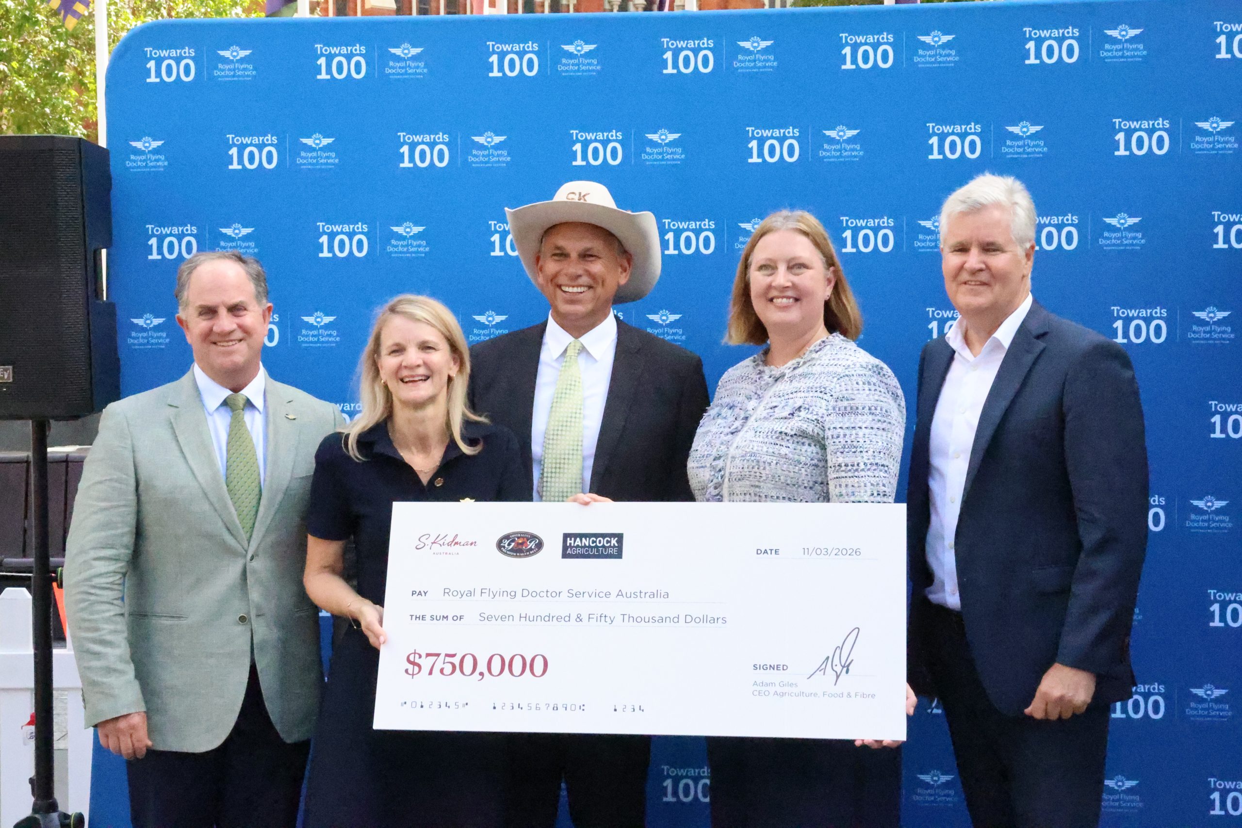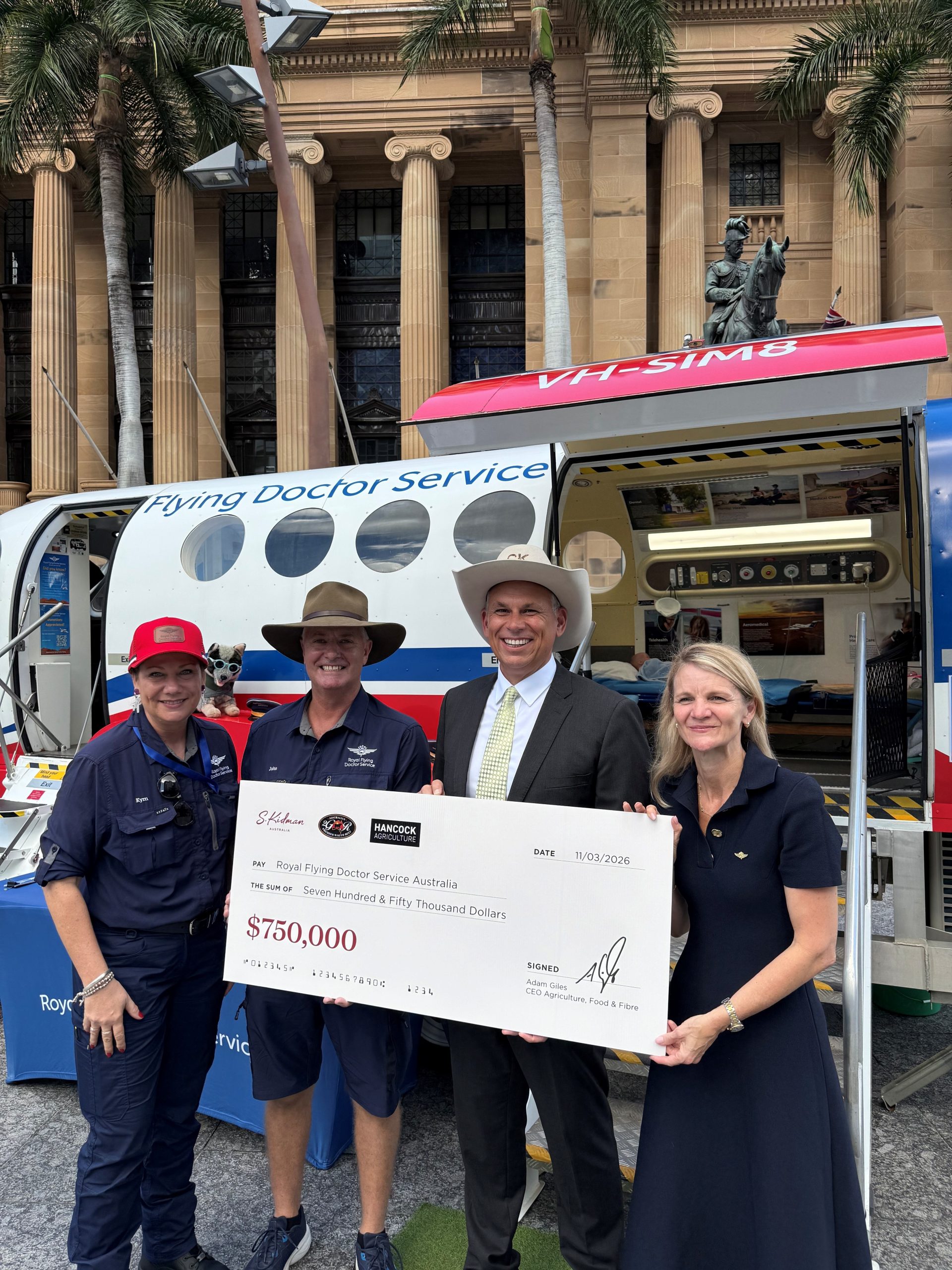 At a special event today, Hancock Agriculture Chief Executive Officer, the Hon. Adam Giles, officially handed over a $750,000 cheque to the RFDS.