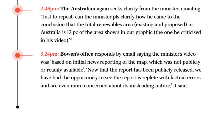 Mr Bowen declined to justify his claim, or to explain how he derived the 12 per cent figure, when repeatedly asked to do so over the course of two days. “The response was based on initial news reporting of the map, which was not publicly or readily available,” was all a government spokesman would say. “Now that the report has been publicly released, we have had the opportunity to see the report is replete with factual errors and are even more concerned about its misleading nature.”